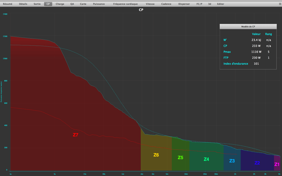 Le logiciel permet au fil des séance de « construire » la courbe de puissance propre à l’athlète: