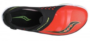 Fraîchement arrivé à New-York, intrigué par ces Saucony Hattori exposées en vitrine, je franchis la porte du premier magasin de chaussures. J’essaie une paire. Ces chaussures sont impressionnantes à plus d’un titre: la conception est très différentes des chaussures conventionnelles: pas de languette, pas de lacets, on se situe entre les pantoufles et les chaussures de plongée. Une membrane elastique fixée sur la semelle. L’intérieur de la chaussure présente un confort incroyable, grâce à l’absence de coutures et au choix des matériaux. La semelle est très souple, plus que celle de mes Asics Piranha SP3, ce qui en fait une chaussure minimaliste parfaite pour qui souhaite courir « barefoot ».