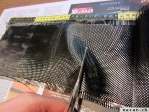 J’ai également profité de préparer le feuille de carbone à appliquer pour la réparation. D’abord, j’ai mesuré la circonférence du tube: