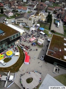 L’une d’elles me semble en particulier digne d’intérêt: une entreprise de la commune propose une petite promenade en altitude à bord d’une nacelle d’un camion-grue. Peu d’attente pour se hisser au dessus du village, et je monte donc à bord après avoir enfilé mon harnais de sécurité!