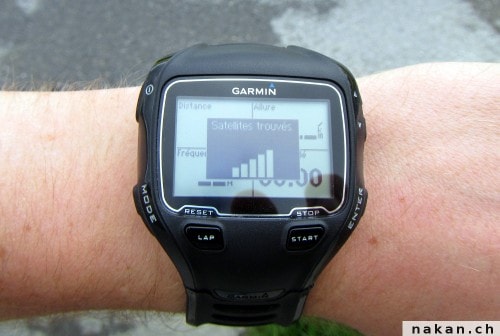 Une fois en mode « course à pied », la 910XT va automatiquement chercher un signal GPS. La recherche de signal peut prendre quelques minutes lors d’un démarrage « à froid ». Par contre, si la montre a été utilisée en mode GPS dans les 3 derniers jours, l’acquisition des satellites devrait être assez rapide, environ 30 secondes.