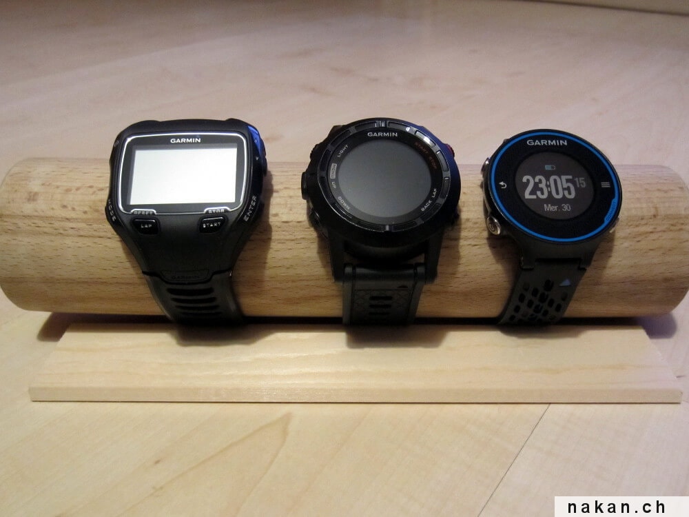 De gauche à droite: la 910xt, la fénix 2 et la Forerunner 620.