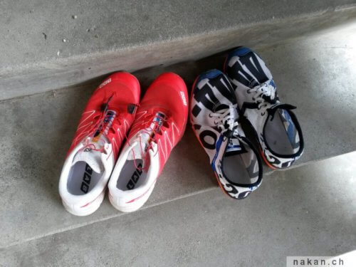 Arrivé sur place, je récupère mon dossard et je vais préparer ma zone de transition. Bien que j’aie pris les deux paires de chaussures de càp, ce sont finalement les S-Lab Sense 2 avec lesquelles je vais courir, le terrain étant détrempé, les Wave Universe 5 auraient probablement trop glissé: