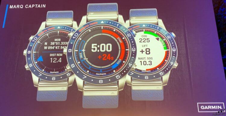 Destinée aux navigateurs, la Garmin MARQ Captain intègre des fonctions déjà connues des séries Quatix. Mais elle propose une nouvelle application pour la gestion des départs en régate. En entrant les coordonnées GPS des deux bouées délimitent la ligne de départ, il sera possible d’afficher un compte à rebours sur la montre qui indique également le rapprochement de la ligne de départ.