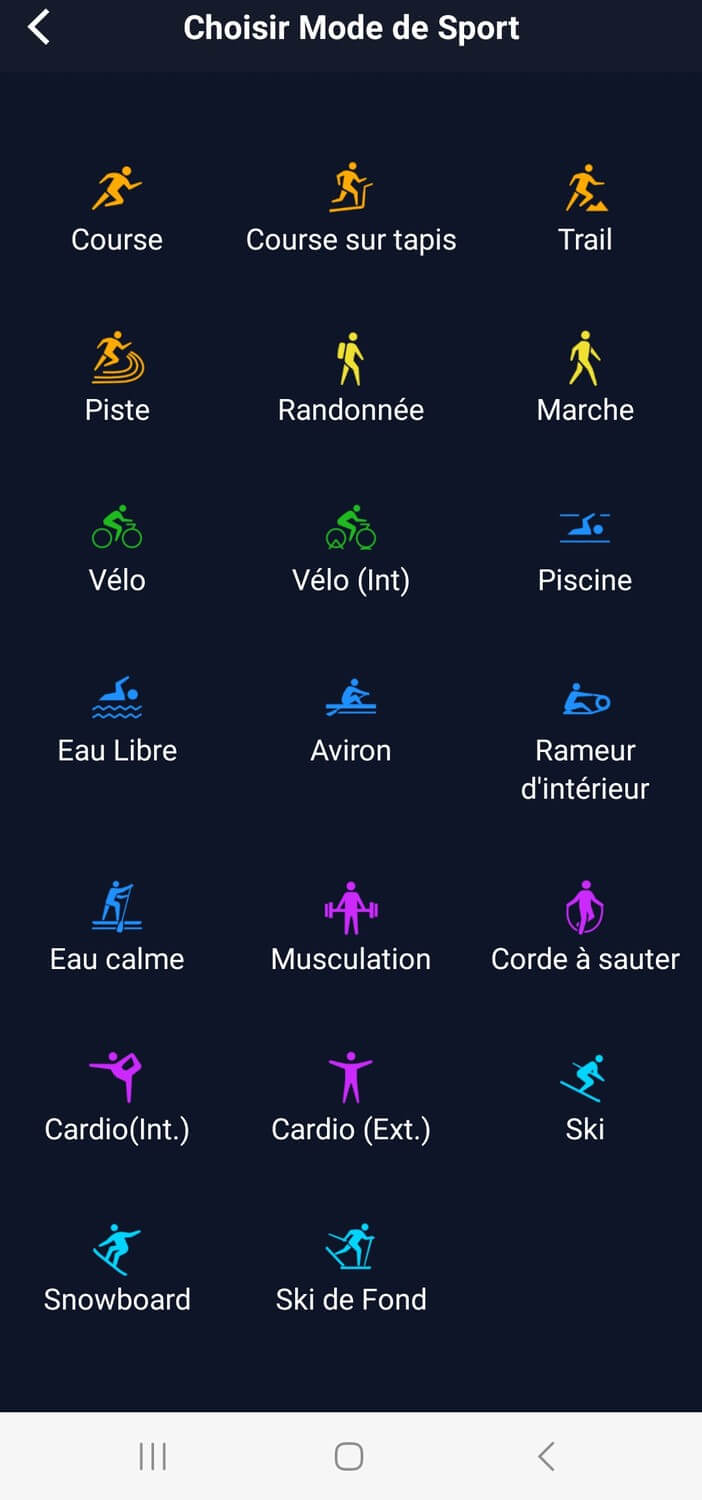 - Des profils sportifs spécifiques pour la course à pied, la course sur piste, la course trail, la randonnée, la marche, la natation en piscine, la natation en eau libre, le triathlon, la musculation, le cardio, l’aviron, les sports nautiques en eau vive, les sports nautiques en eau calme, le ski alpin, le snowboard, le ski de fond et la corde à sauter.