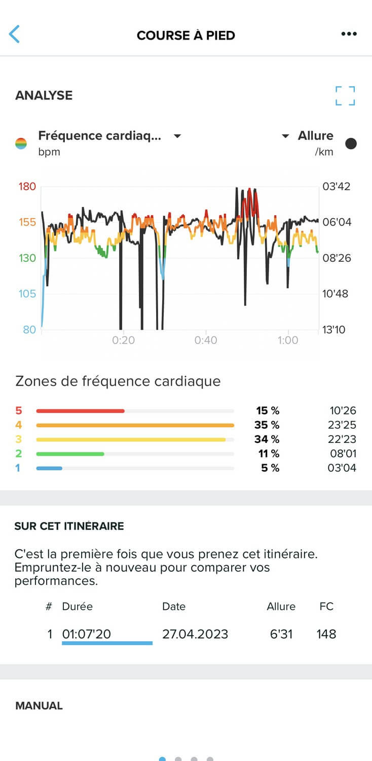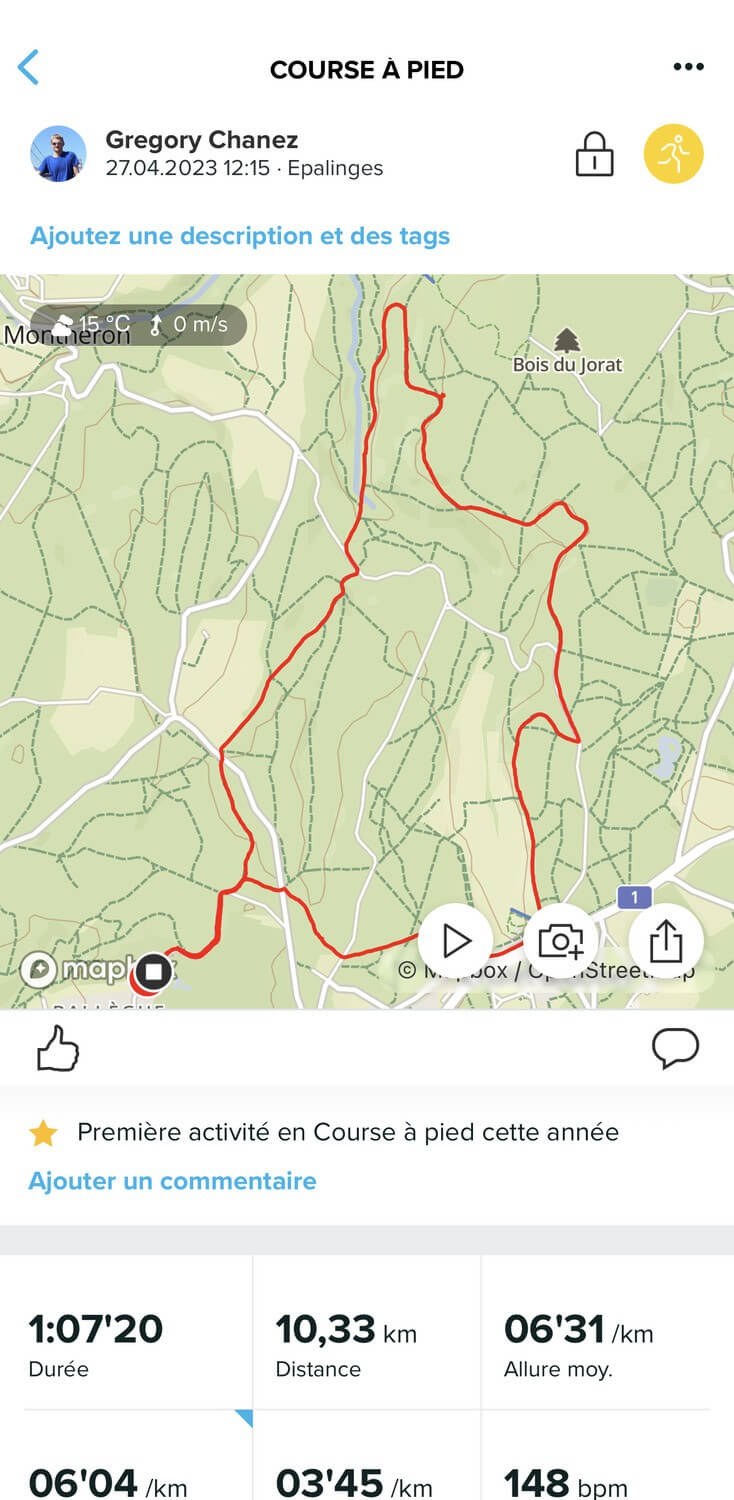 – la comparaison des itinéraires automatiques, lorsque tu fais la même boucle ou le même kilomètrage, l’application compare tes performances.