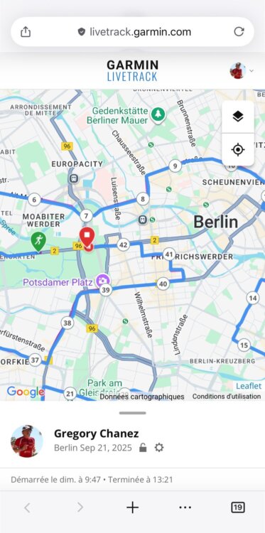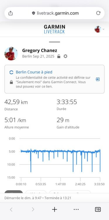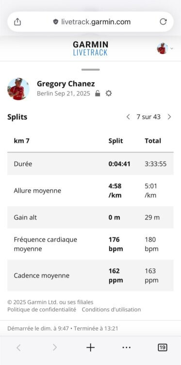 Dans la réalité, il s’avère que la fonction LiveTrack via le LTE-M de la montre Garmin ajoute un délai, c’est ce que nous avons constaté mes proches et moi lorsque j’ai notamment utilisé cette fonction sur le marathon Berlin.