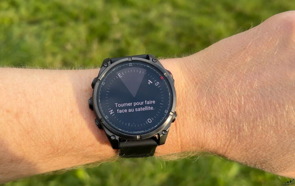 Sur la fenix 8 Pro, l’envoi et la réception de données par satellite nécessite une orientation de la montre vers le meilleur satellite disponible.