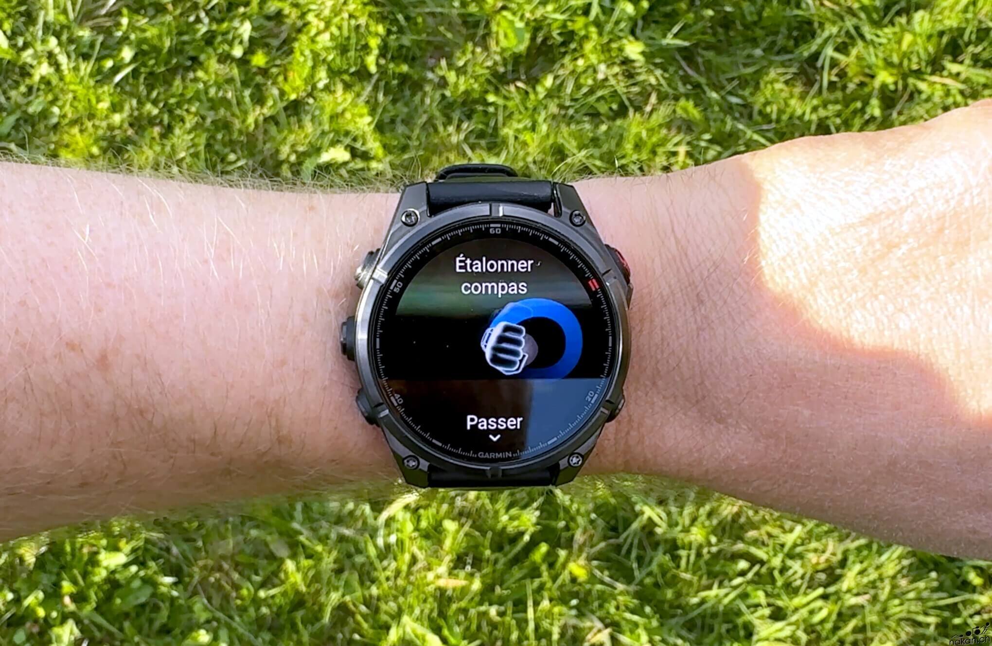 La première partie consiste à s’orienter vers le satellite. Si nécessaire, la montre va demander à étalonner son compas magnétique, puis va indiquer la direction du meilleur satellite: