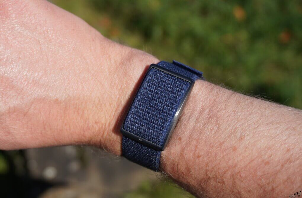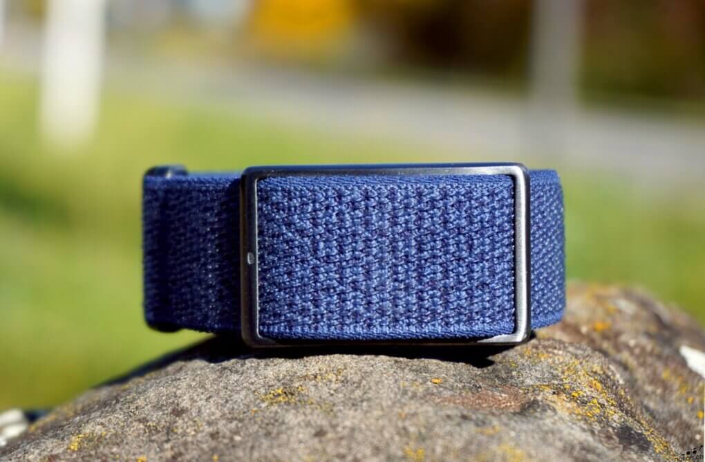 Si il n’y a pas formellement de sens pour porter le bracelet textile et la boucle, le module est lui conçu pour fonctionner de manière optimale dans un certain sens. L’un des deux passants du module affiche une petite encoche, et cette dernière doit se situer du côté du pouce, quel que soit le poignet auquel on porte le bracelet Loop.
