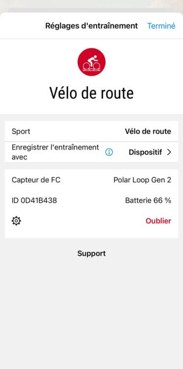 Dans l’app Flow Mobile, dans les paramètres du Loop, on configure un niveau de déclenchement d’un enregistrement automatique de session sportive.