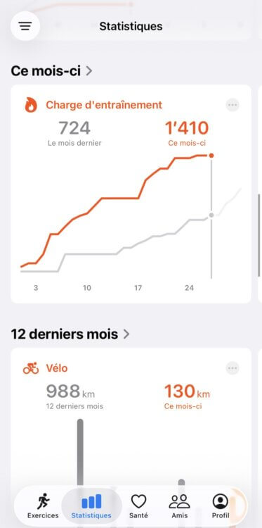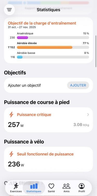 Mais il manque des informations plus précises sur le suivi d’entrainement. Pour en avoir, on doit passer par des apps ou des plateformes tierces. On peut par exemple envoyer les entrainements enregistrés avec l’Apple Watch sur Strava et analyser ses performances avec cette plateforme si on le souhaite.