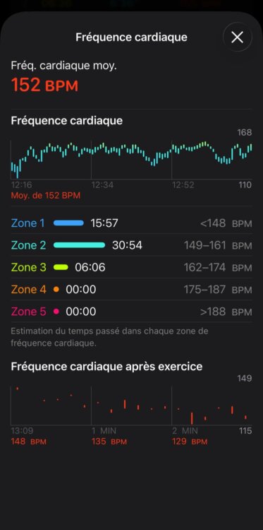On le voit, pour ces activités, l’Apple Watch Ultra 3 propose une excellente mesure cardio.