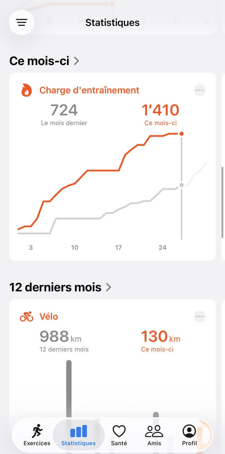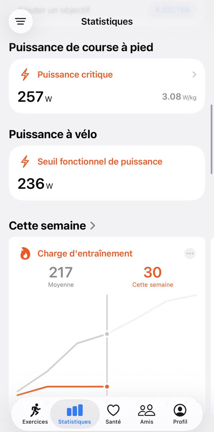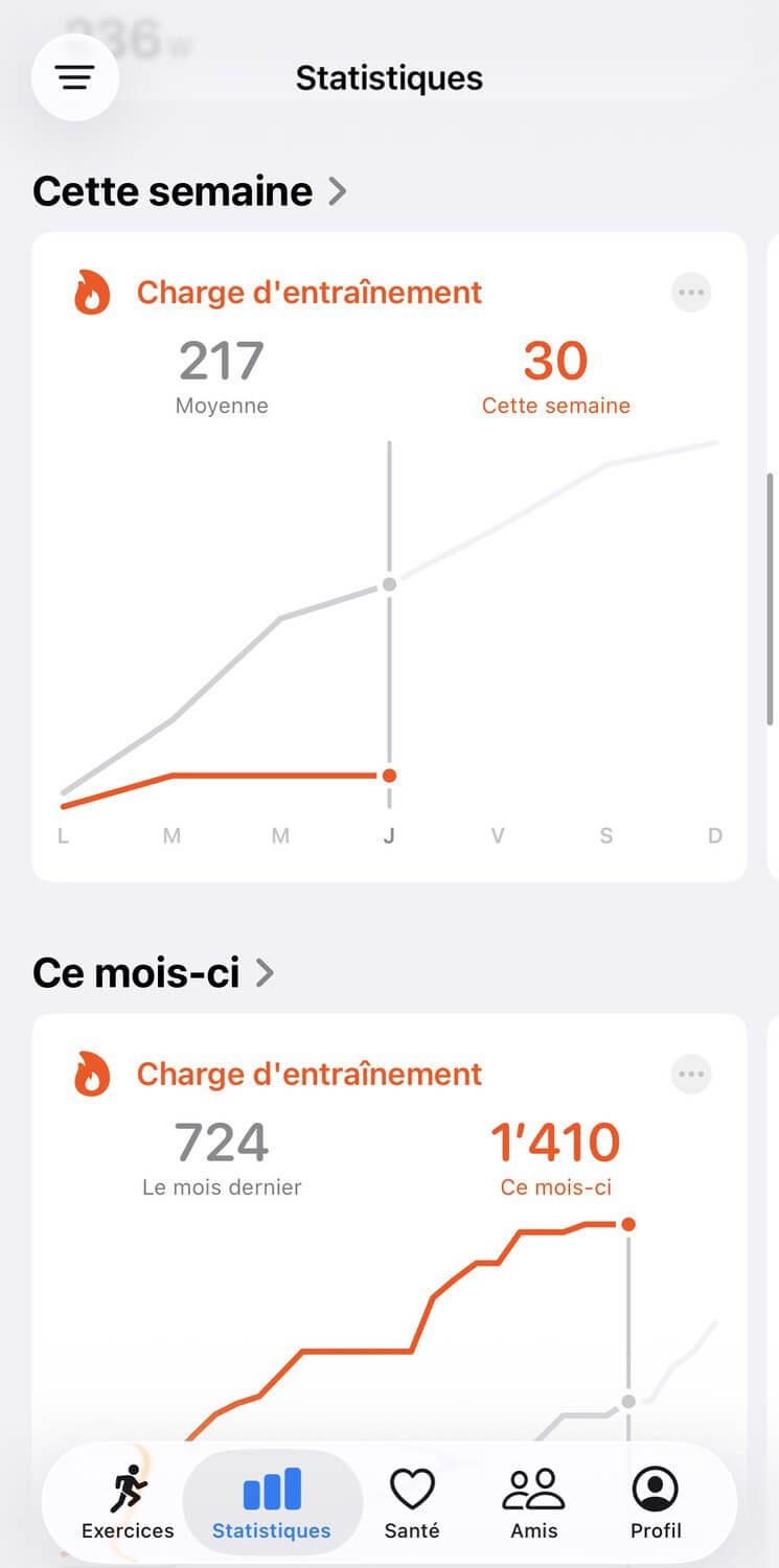 On l’a vu plus haut, c’est ce qui fait défaut dans le suivi sur l’Apple Watch aujourd’hui. On a bien la possibilité après chaque entrainement de renseigner une perception d’effort, et de voir le résultat de la charge sur la montre ou dans l’app Exercice, mais c’est un peu tout…