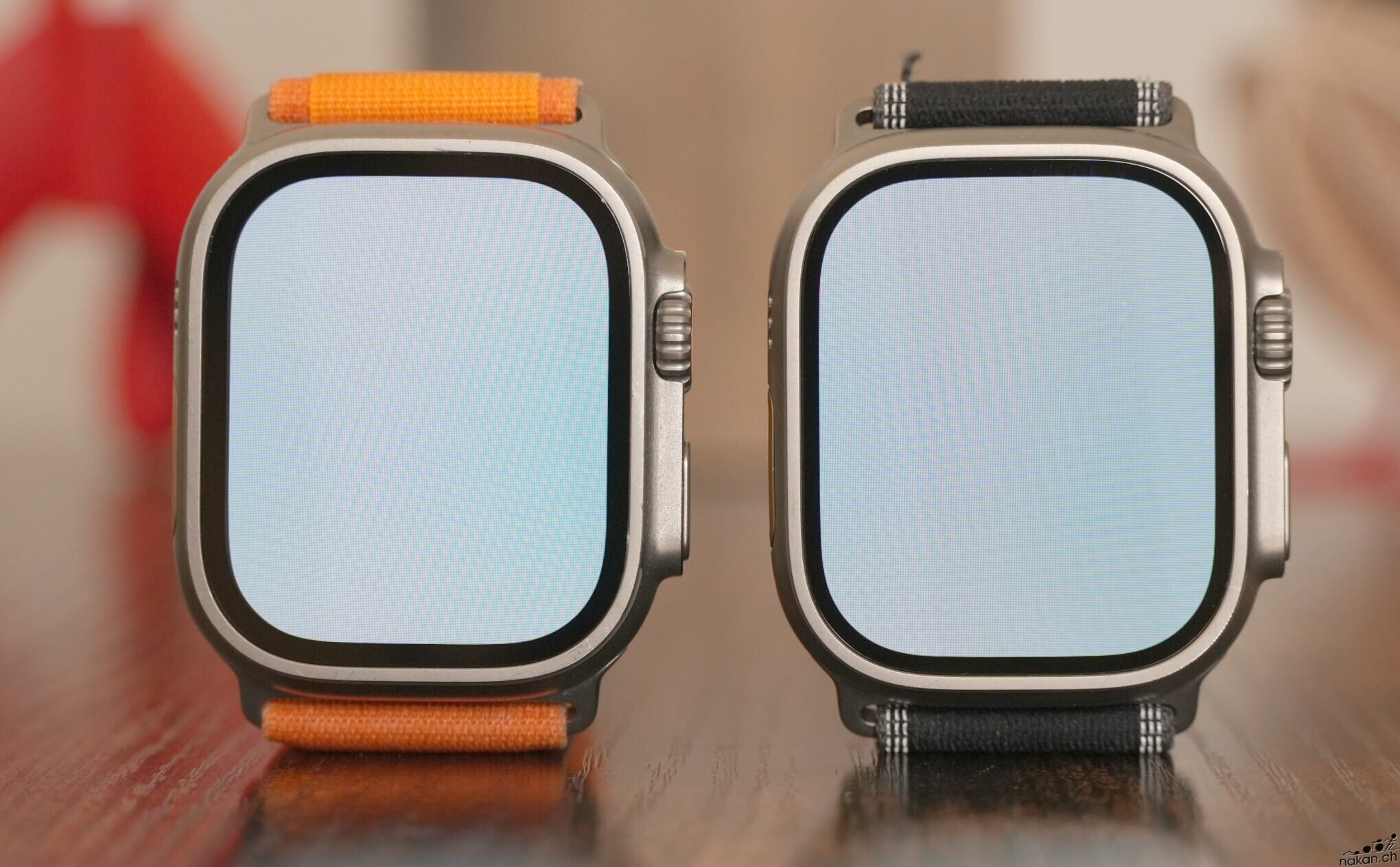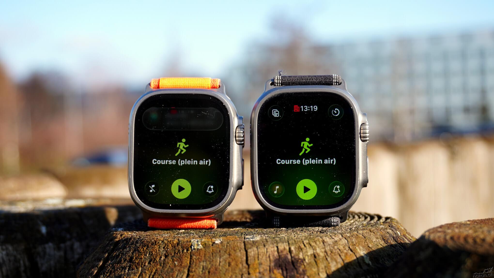 L’Apple Watch Ultra à gauche, et l’Ultra 3 à droite