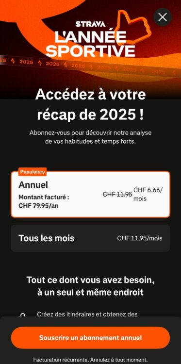 Chez Strava, l’abonnement payant des utilisateurs est la principale source de revenus. Proposer le rapport annuel via l’abonnement payant, c’est s’assurer plusieurs abonnements mensuels et surtout des abonnements annuels puisque c’est la formule mise en avant.