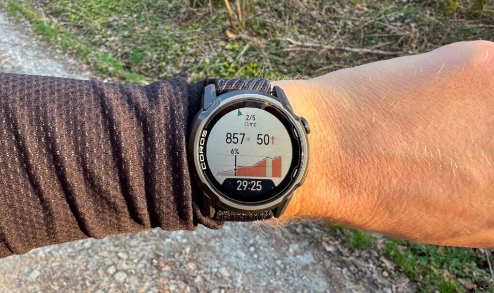 Cette fonctionnalité de COROS reprend à peu près les mêmes codes que sur les autres plateformes. Que ce soit sur les montres ou le compteur Dura, l’assistant de montée ne fonctionne que si on suit un itinéraire pré-défini. Actuellement, sur les montres, il ne fonctionne que dans le profil de course à pied et le profil de trail.