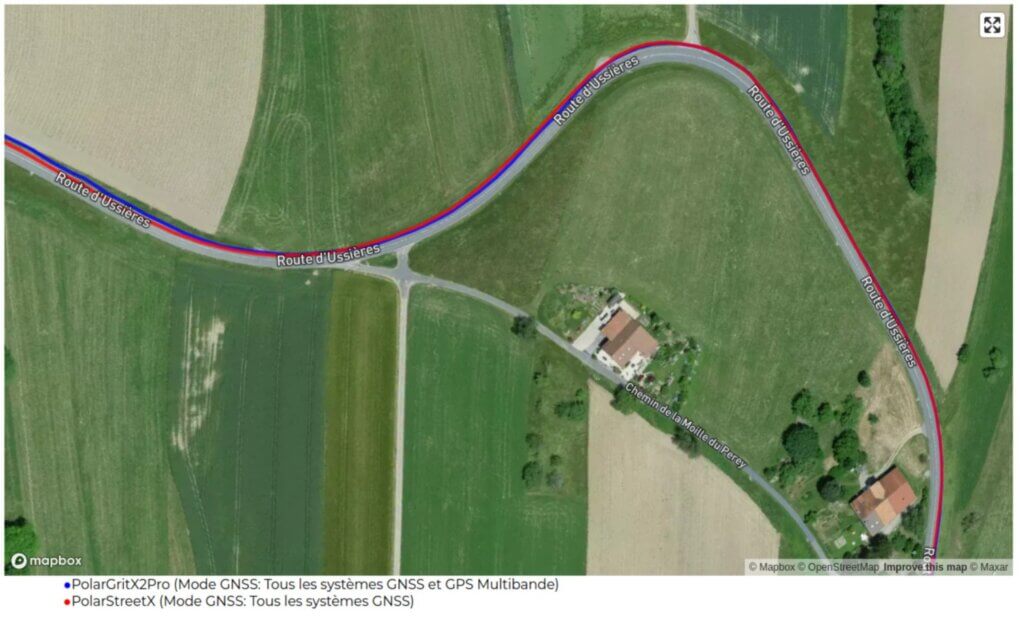 Sur ce comparatif, la mesure est comparée à celle de la Grit X2 Pro sur une sortie de vélo accidentée: