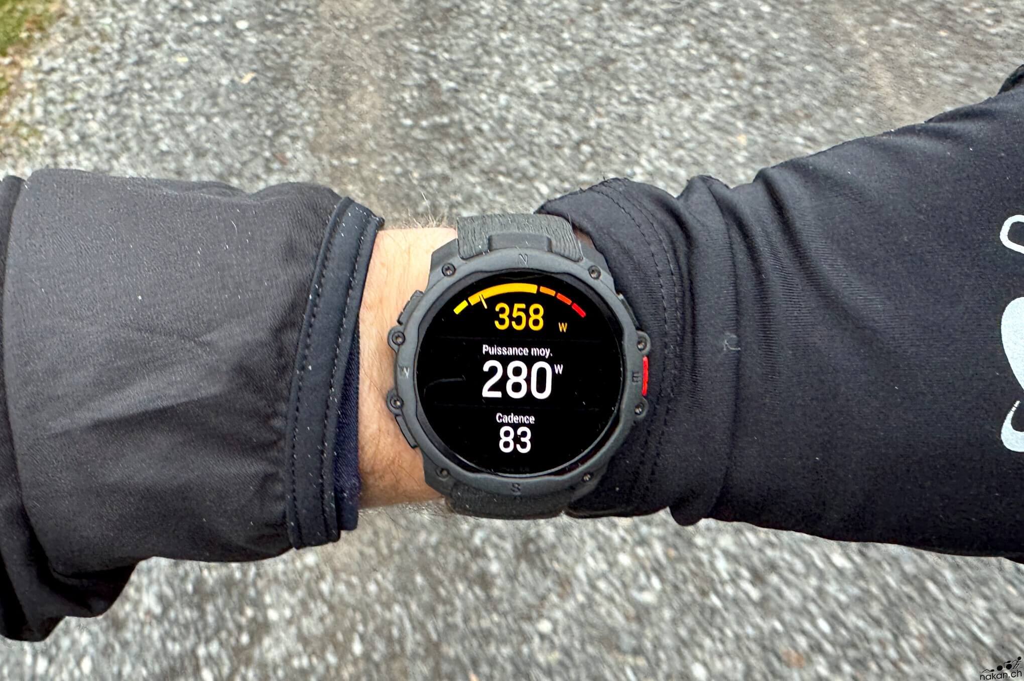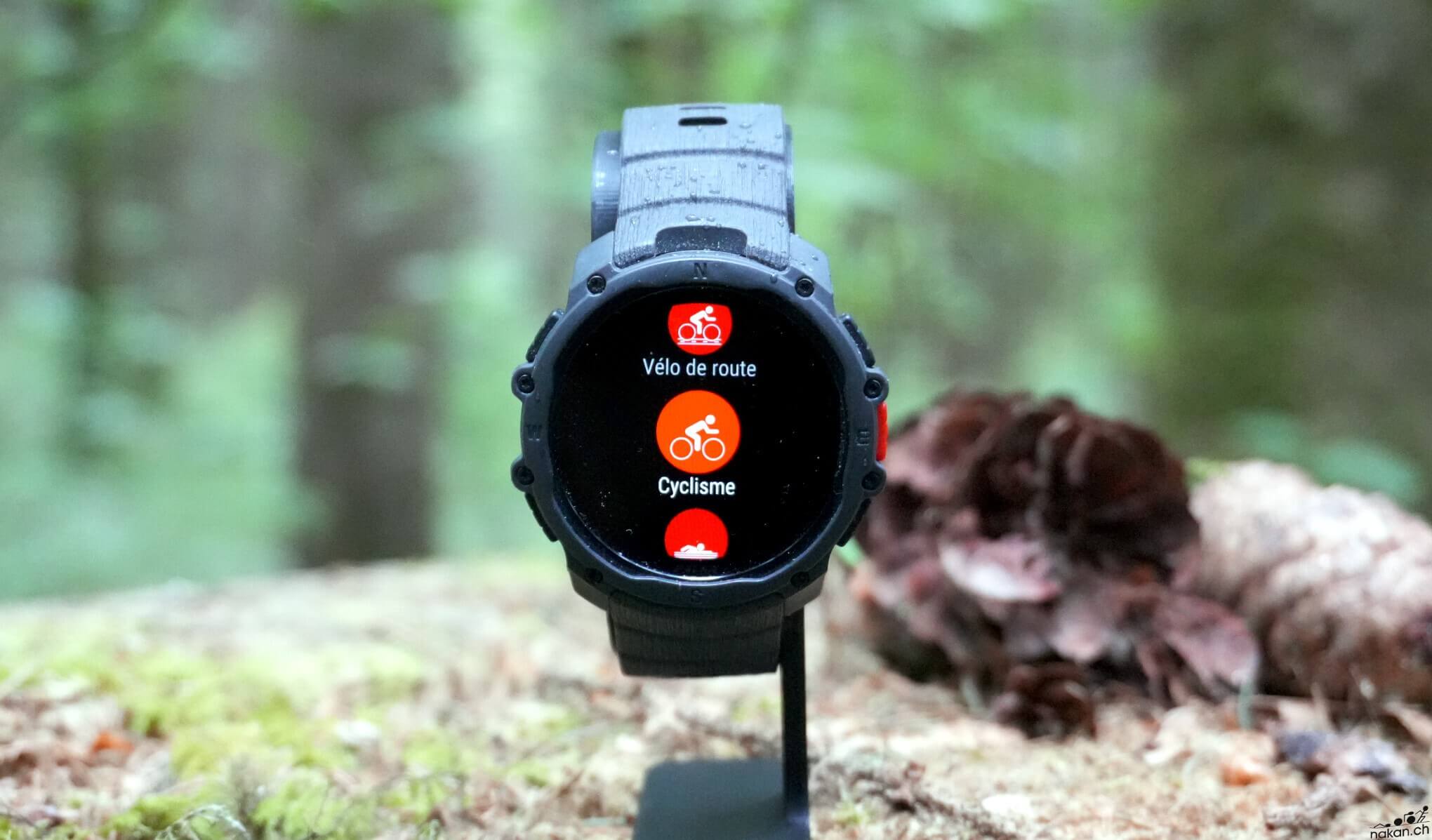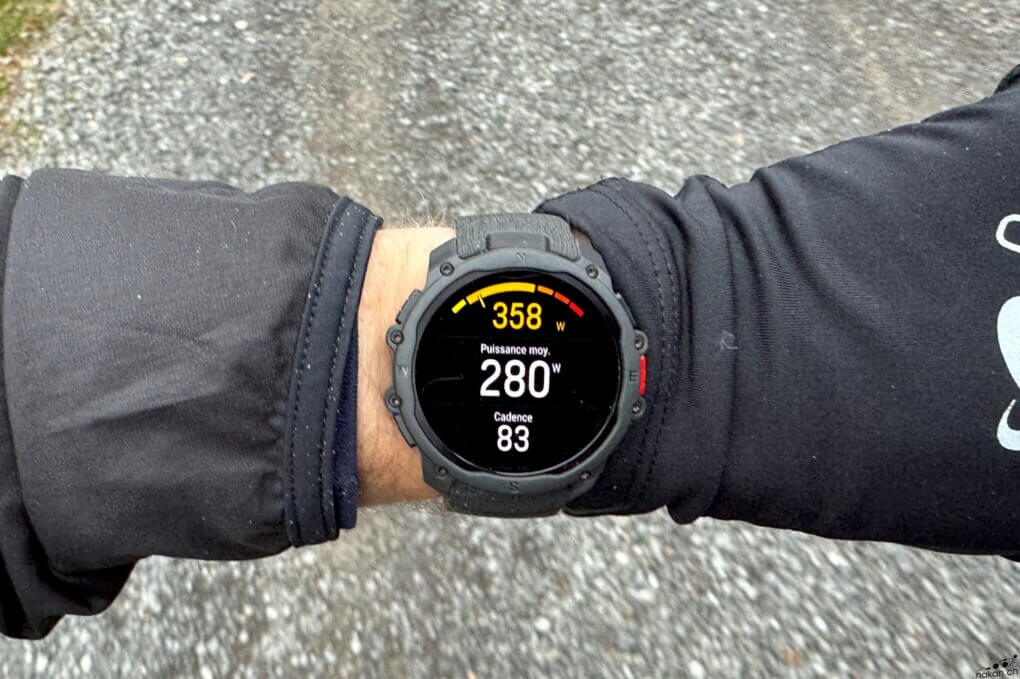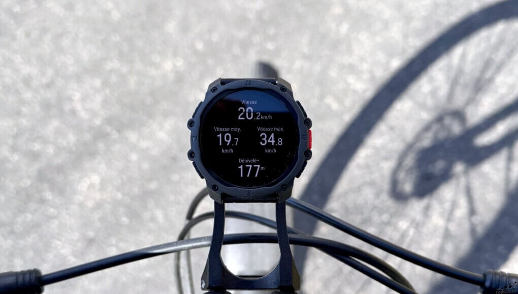 Pour le cyclisme, la montre propose les mesures habituelles : vitesse, fréquence cardiaque, altitude, puissance, cadence. Elle supporte les capteurs de puissance Bluetooth. En revanche, pas de support des groupes électroniques Di2 ou eTap, ni de données avancées comme la puissance normalisée ou les données TrainingPeaks (NP, IF, TSS). C’est dans la continuité de ce que propose la marque sur ses autres modèles.